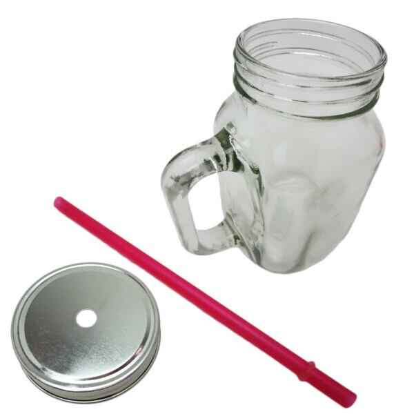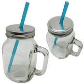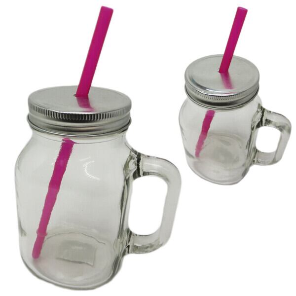 ガラス製のストロー付きドリンクジャーです。