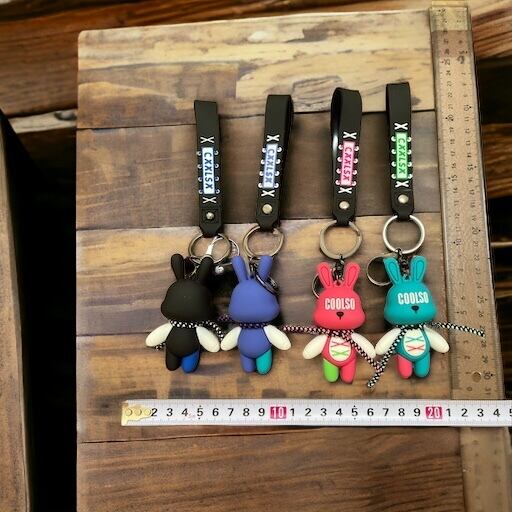 かわいらしいうさぎの形をしたラバーキーホルダーが登場!大きめサイズで存在感抜群の可愛いデザインは、家族や友達、恋人とお揃いで楽しむのにぴったりです。4色展開で選ぶ楽しさもありますね。