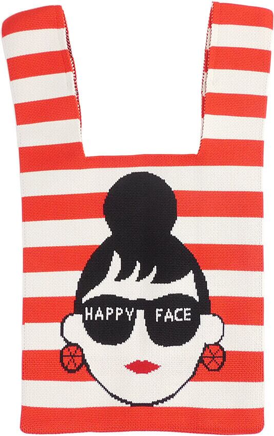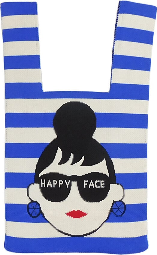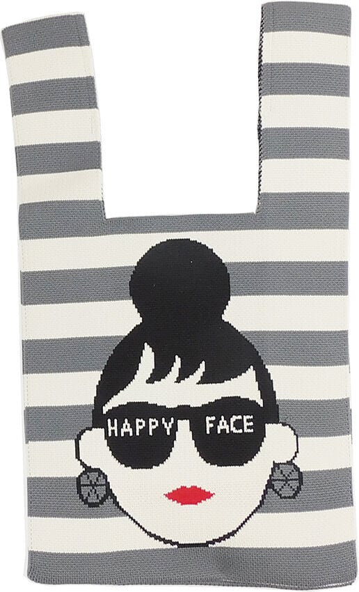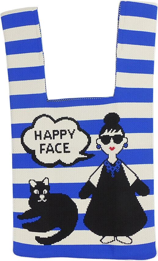 HAPPY FACEが贈る大人気のトートバッグ、ボーダー柄のニットバッグです。お買い物やお出かけにぴったりのサイズ感で、使い勝手抜群のアイテムです。トレンドのボーダーデザインが施されたこのバッグは、どんなコーディネートにもマッチし、おしゃれ度をアップしてくれます。
