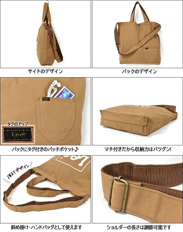 【デザイン】使いやすいショルダー&トートバッグデザインにキャッチ—な【Lee】のロゴプリント。スタイリング/性別を問わず活躍できるユニセックスな万能アイテムです。背面のデニムパンツライクなパッチポケットがLeeならではのデザインです。朝のバッグ選びに迷った時にも手に取りやすいデザインに仕上がっています。コーディネートや気分に併せて色を選びやすい他色展開。お気に入りのカラーをお選び下さい。