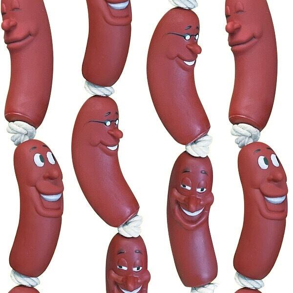 表情豊かなソーセージが4つロープで繋がったソーセージロープです♪
